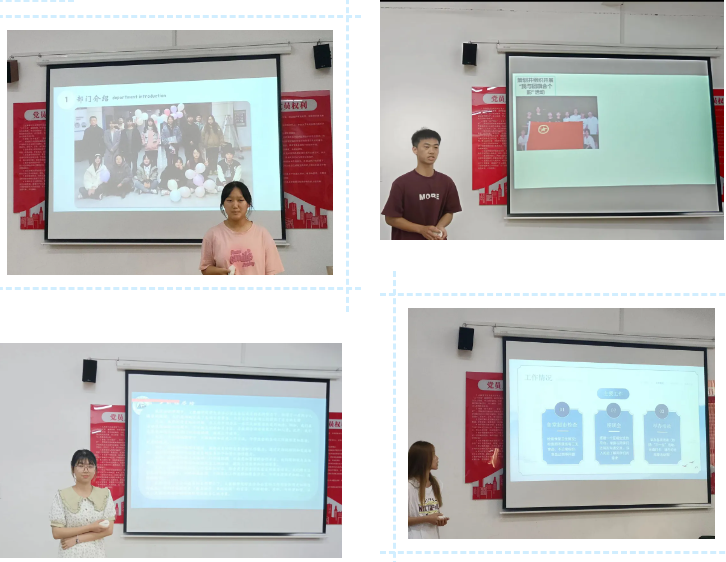 会议伊始,各部门负责人严阵以待,在述职时他们各展风采,以自己独特的方式从部门成员、工作概述、工作总结、未来期望等方面进行讲述。在他们的PPT中放置的图片,参会人员们可以看到当时开展的活动的场景,并感受到当时一些活动的有趣。在他们工作总结中,参会人员们也可以看出,他们对于此次述职工作大会的重视以及对于这学年工作他们感悟深刻。在他们的未来展望中,参会人员们也可以感受到,各部门负责人们对于工作的认真以及对于bat365中文官方网站分团委学生会越来越好的美好期望。