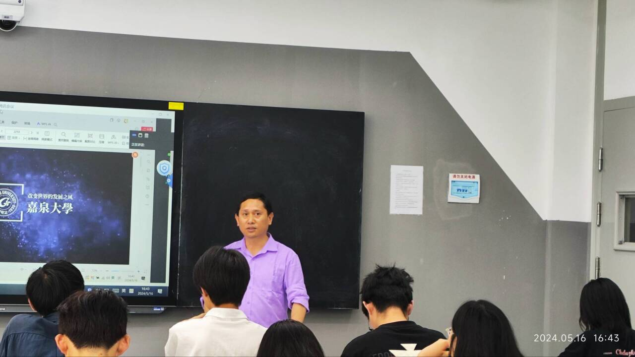 宣讲活动开始,张学林副院长致欢迎词,欢迎在座各位的到来。接下来,元慧渊教授向在场的学生们详细介绍了嘉泉大学的概况和学校文化。她提到,嘉泉大学作为韩国的一所知名学府,拥有悠久的历史和深厚的文化底蕴,注重培养学生的创新能力和实践精神。此外,嘉泉大学还拥有先进的教学设施和丰富多样的课程体系,为学生提供了广阔的发展空间和无限可能。