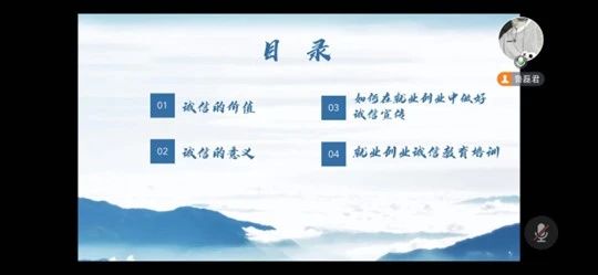 继而,鲁磊君老师为毕业生们讲解了诚信的意义,以及如何在就业创业中做好诚信宣传,帮助毕业生们有正确价值引领,使之更好地应对求职过程中的各种问题和挑战。