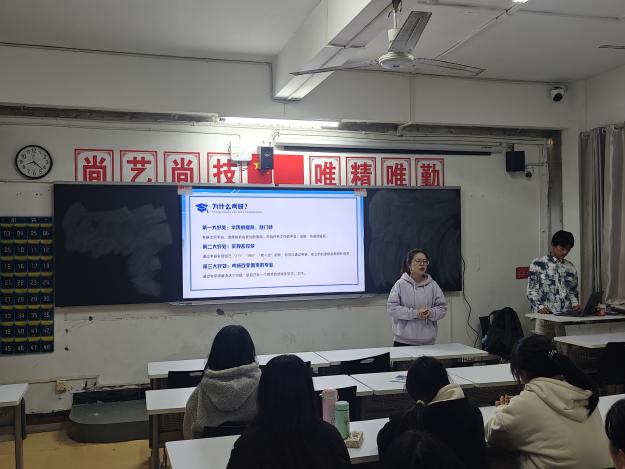 分享会上,方文倩老师首先结合当前就业市场竞争态势,点明考研深造的核心价值:在数据科学领域快速发展的当下,研究生学历既是专业能力的深度升级,更是拓宽职业赛道、提升核心竞争力的关键抓手,能帮助学子接触前沿学术成果与技术应用,为长远职业发展筑牢根基,呼应了我校“强内核、建图表”的就业赋能理念。