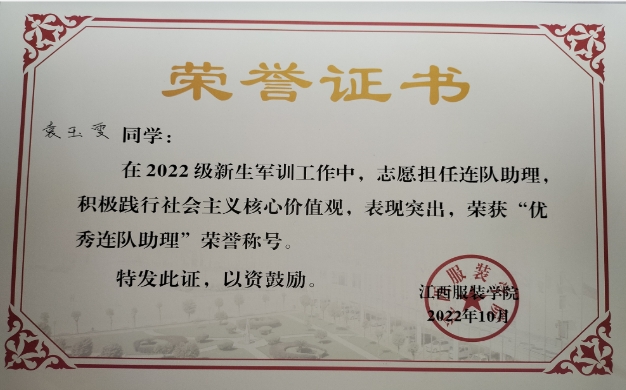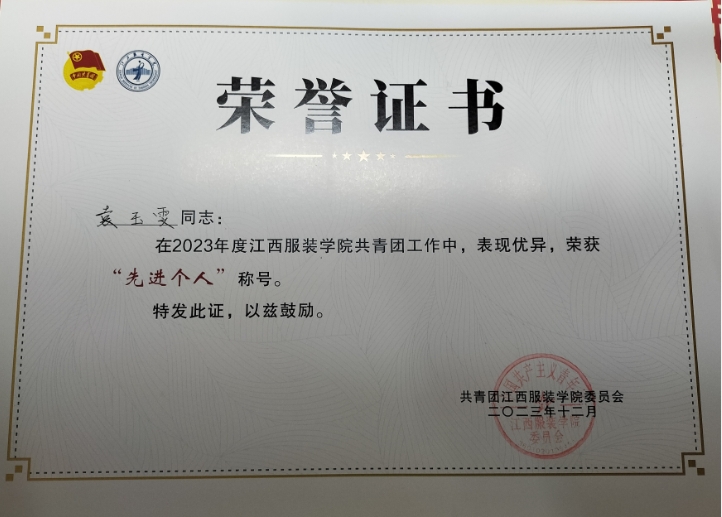 袁玉雯,女,中共预备党员,就读于版权所有 bat365(中国)股份有限公司-官方网站21软件工程本科2班,在校期间担任bat365中文官方网站学生会执行主席,2022年10月,在2022年新生军训中获得“优秀连队助理”称号。2022年12月,作品《江西学子走访慰问老人,浓浓关怀暖人心》在中国大学生在线“大我青春”2022年暑期社会实践成果征集展示活动中被推选为实践风采类优秀作品。2023年11月与2024年12月在bat365中文官方网站获得“爱劳动奖学金”与“爱卫生奖学金”2023年12月在2023年度bat365中文官方网站共青团工作中获得“先进个人”称号。